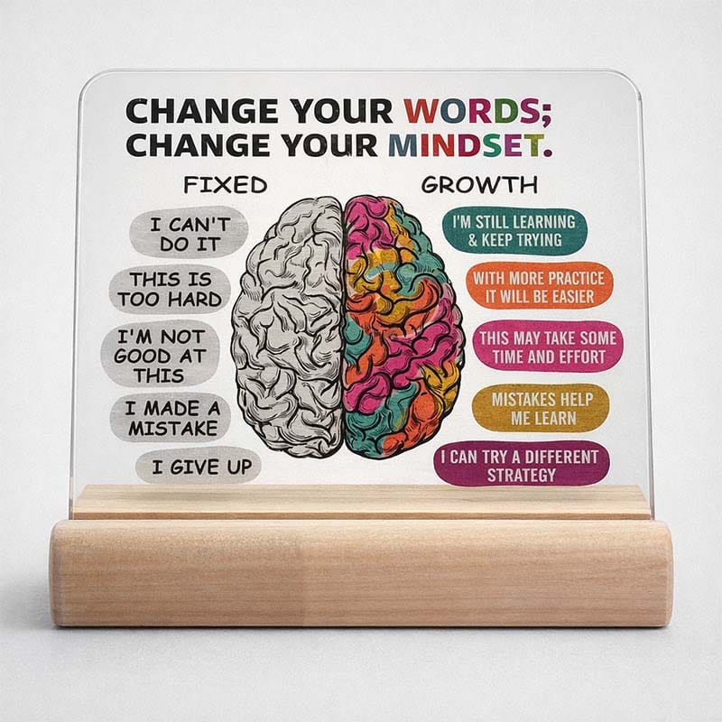 Growth Mindset Acrylic Desk Sign – Educational Motivational Display