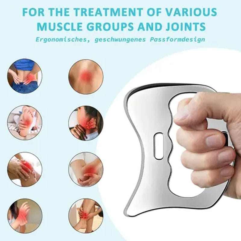 RELIEVE SORENESS: This stainless steel gua sha tool effectively relieves muscle soreness, knots, and tightness through gentle scraping and massaging of soft tissues.