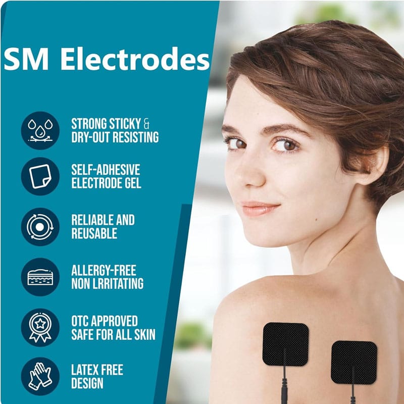 • TENS Unit Replacement Pads: Our 5x5cm electrodes replacement pads have white non-woven backing with black carbon conductor and premium gel adhesive, flexibly conforms to various body parts, effectively pain relief for arms, ankles, backs, legs, feet, elbow, hip, thigh, wrist or flat areas elbow, hip, thigh, wrist or flat areas