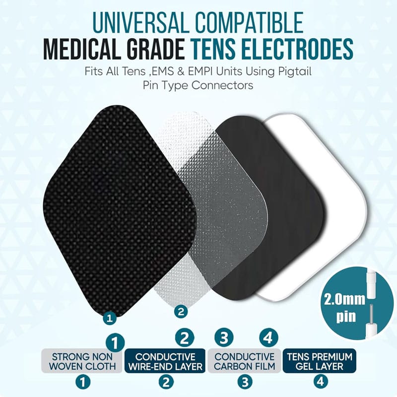 • Universal Compatibility: Standard 2 mm pin-in connector TENS units; which makes it easier for you to find compatible TENS unit muscle stimulator & accessories Compatible with all TENS / EMS devices that use the industry standard Standard 2 mm pin-in connector