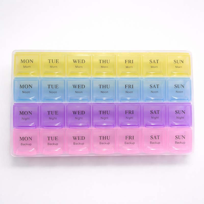 Weekly 28-Compartment Pill Organizer (Morning • Noon • Night • Backup)